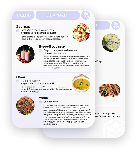 Нет, останетесь сытыми: у меню есть ветки с рыбой, мясом и вегетарианскими опциями, а там, где «ключевую роль» играет белок, мы сразу предлагаем альтернативы — бобовые, яйца, тофу, ферментированные молочные продукты, чтобы сохранялась сытость и не «скакал» аппетит.